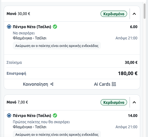 Στο ΦΛΑΜΕΝΓΚΟ – ΤΣΕΛΣΙ επιλογή θα είναι το γκολ γκολ , πόσο δε όταν το βρίσκουμε πάνω από διπλασιασμό , στο 2.02 είναι στον Stoiximan (ΕΔΩ) . Η Τσέλσι νίκησε εύκολα την Λος Άντζελες ΦΚ στον εναρκτήριο αγώνα της  και έχει κερδίσει εννέα από τους τελευταίους δέκα αγώνες της σε όλες τις διοργανώσεις (!) ενώ η αμυνά της δεν είναι για σεμινάριο. Η Φλαμένγκο είναι ισχυρό σύνολο, έχει σκοράρει σε 11 από τους τελευταίους 12 αγώνες της και θα μπορούσε να δημιουργήσει προβλήματα στην άμυνα της Τσέσλι. Τρελίτσα… να σκοράρει ο Πέδρο Νέτο σε απόδοση 6.00  ✅✅✅✅✅ που το θεωρουμε εξαιρετικά υψηλό αν λέβουμε υπόψηότι  έχει πετύχει τρία γκολ στις τελευταίες τέσσερις εμφανίσεις του με την Τσέλσι. Ο Νέτο άνοιξε το σκορ εναντίον της Λος Άντζελες στον πρώτο αγώνα της Τσέλσι στο Παγκόσμιο Κύπελλο Συλλόγων της FIFA.  Nα ανοίξει ξανά το σκορ πληρωνει 14.00  ✅✅✅✅✅