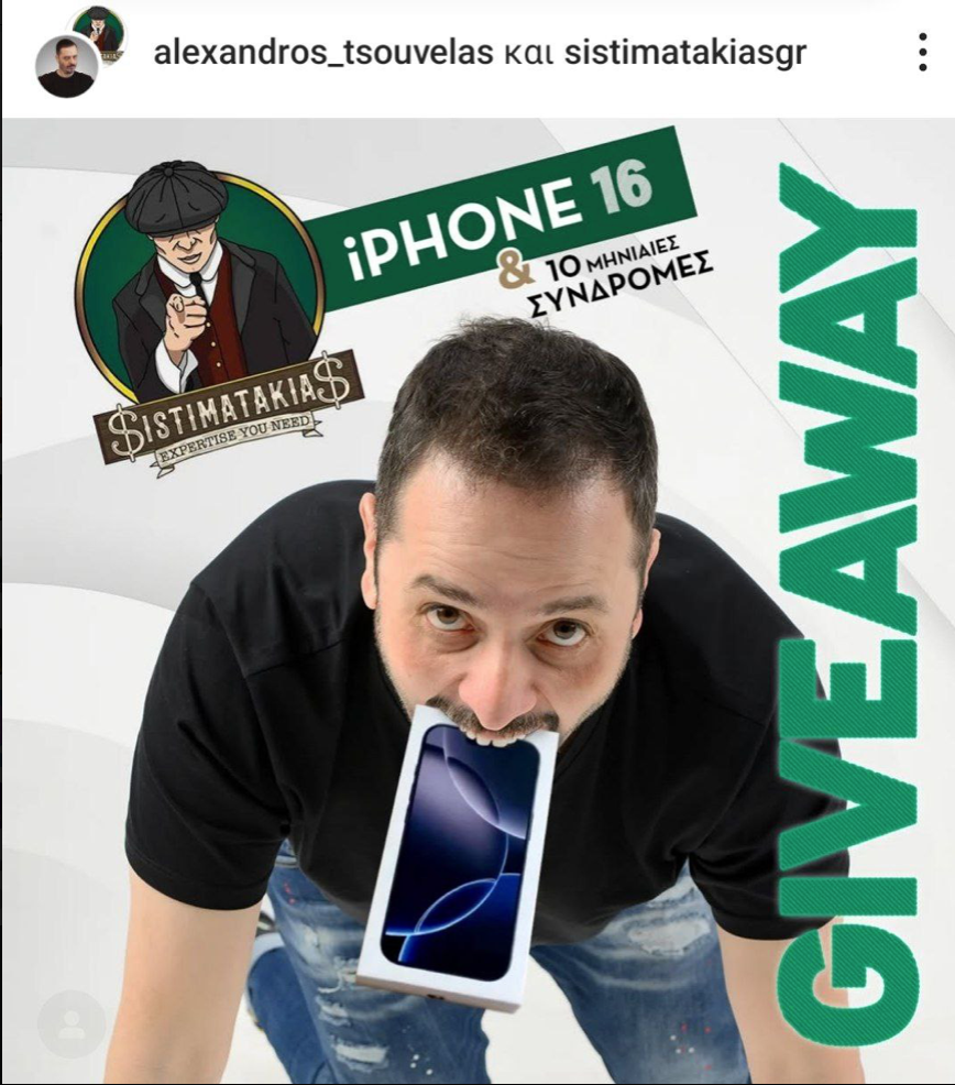Ο @sistimatakiasgr δίνει ένα iPhone 16 και δέκα δωρεάν μηνιαίες συνδρομες..