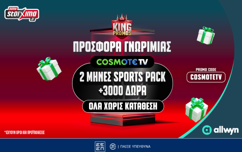 👉👉👉 Super Τετραπλή Προσφορά με 2 Μήνες Cosmote TV Sports Pack & 3000 Δώρα*