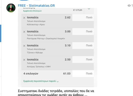 τα ματς είναι από Αγγλία , Πολωνία , Ιταλία και Ελλάδα …